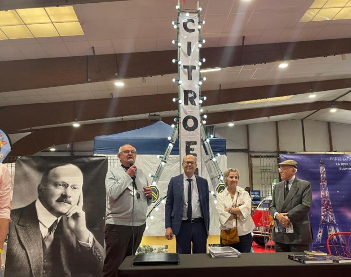 À l’occasion des 100 ans des illuminations de la Tour Eiffel créées par Fernand Jacopozzi et financées par André Citroën, leurs petits enfants (Philippe Citroën, Veronique Tessier Huort, André de Saint Sauveur) ont rendu hommage à leurs grands-parents au milieu de collectionneurs passionnés par la saga Citroën.